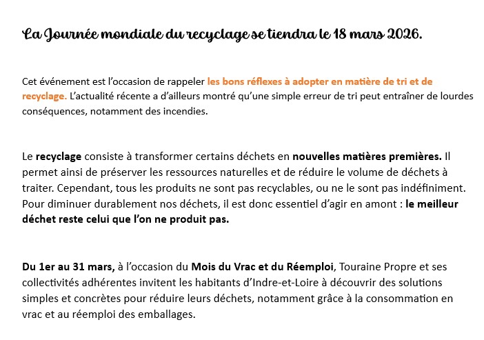 La Journée mondiale du recyclage se tiendra le 18 mars 2026. Testez-vous en cliquant ici Retour : Actualités